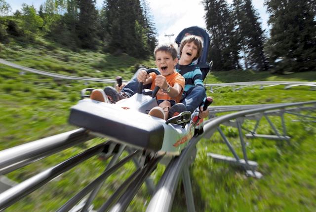 Toboggan down the 747-meter descent into the valley at up to 42 km/h. The thrilling and exciting track provides an impressive feeling of curves on aluminium rails. Tobogganing is fun for the entire family!
