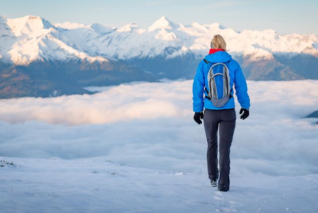 A snowshoe tour to the top of the mountain with views of the town and Lake Zell. After taking in the breathtaking scenery, descend through pine forests, stop for lunch at the Pinzgau Hütte, and either continue descending or board the lift.