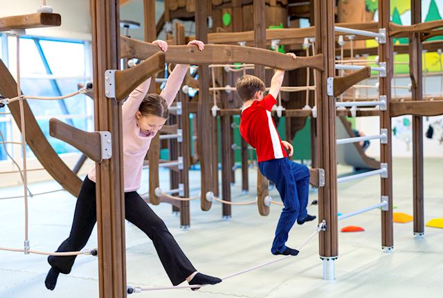 Do your children need to expend some energy? No problem, just let them loose in the new indoor playground! The playground is great not only for romping around, but also for attempting to scale the climbing tower, cross the footbridges, and whizz down the slides – just remember to slow down when walking the tightrope!